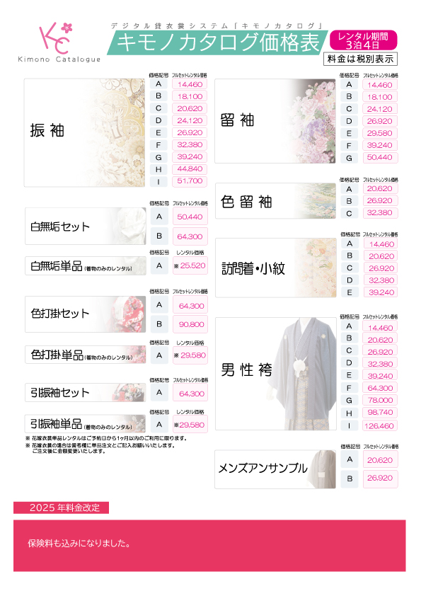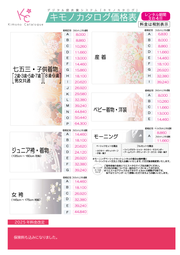 キモノレンタル価格表